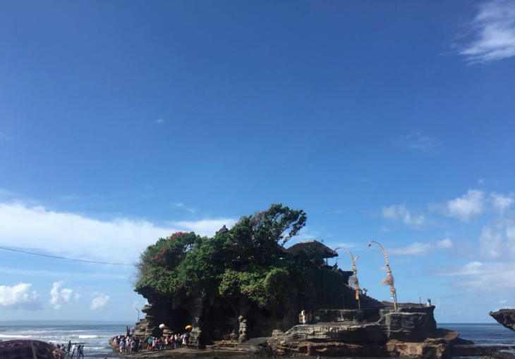 Tanah Lot – A huge tourist temple with busloads of people piling in to see the temple, making photo opportunities hard. But it is very picturesque and there is still plenty to see. We loved watching the waves crash on the side of the temple and the sun reflecting off the puddles left from waves. The only downside to this one is the amount of people that flock here.